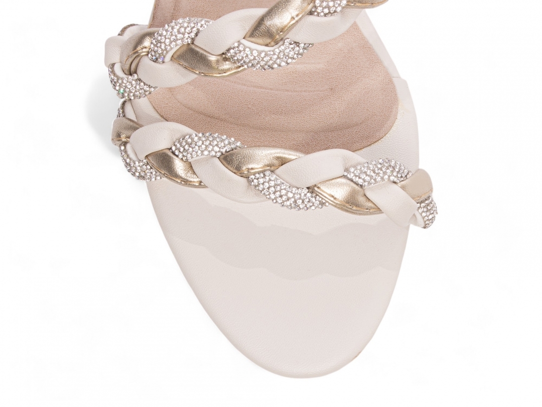 Material: Napa Off White / Napa Metalizado Ouro Ligth / Manta de Strass na cor Prata;